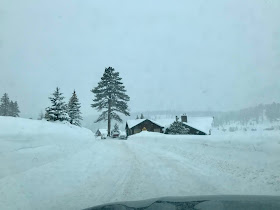 We wilden sneeuw en we hebben sneeuw! De koffers zijn weer ingeladen en we gaan weer op weg naar de volgende bestemming. De hwy 12 in westelijke richting is redelijk schoon.